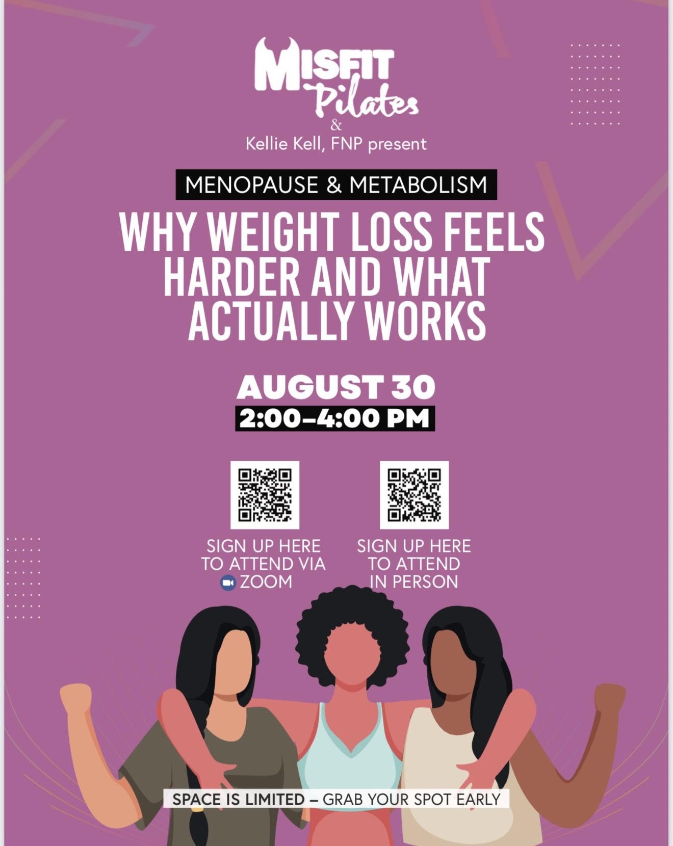 🔥 Only 5 spots left! Join us this Saturday at Misfit HQ for our 'Menopause & Weight Loss' workshop before we sell out.