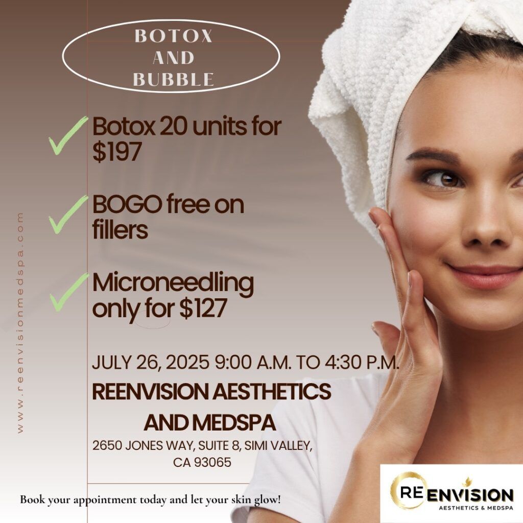 Join ReEnvision Aesthetics & MedSpa for their Botox & Bubbles VIP event on Saturday, July 26 — a luxurious self-care experience featuring champagne, a charcuterie board spread, and exclusive one-day-only specials including: