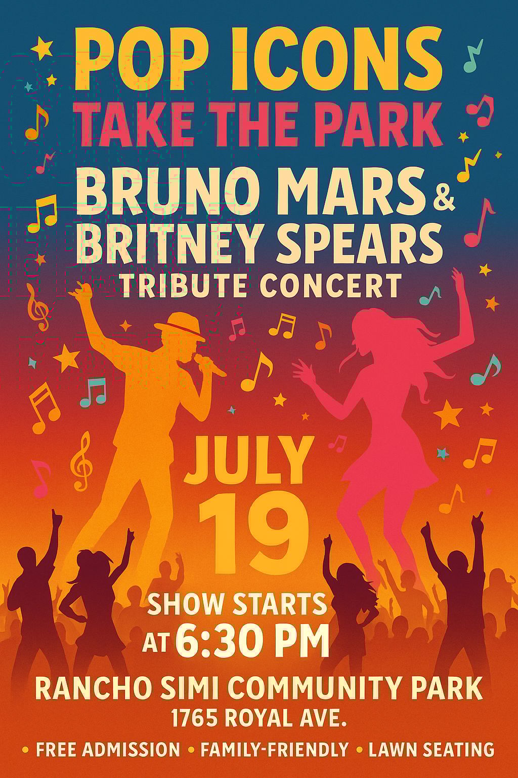 Two pop powerhouse impersonators that give Super Bowl halftime show vibes. One epic night. The Concerts in the Park series continues this Saturday at Rancho Simi Park with a double-header tribute to Bruno Mars and Britney Spears!